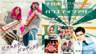 Information 【ライブ告知】2023.06.08 十日市バラエティシアター@広島音楽喫茶ヲルガン座 赤い鍵盤ハーモニカ隊の共演で「なんか似ている」という声をキッカケに、リンクコーデで演奏動画や雑談動画をおこなっていたピアニカ子とメロディカ子。ついに2人がリアルで演奏する機会がやってまいりました。鍵盤ハーモニカデュオで皆様を笑かしにいきます。 2023.05.14 Information